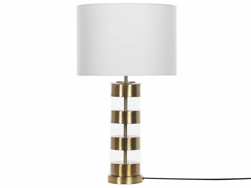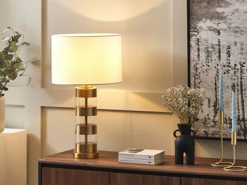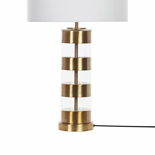 Maisons Du Monde Lampes à Poser Lampe En Céramique Beige Et Fer Doré, Abat-jour En Coton Blanc