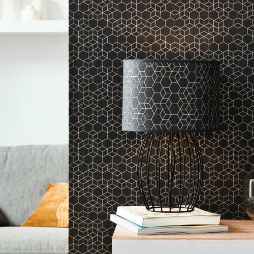 Maisons Du Monde Lampes à Poser Lampe En Céramique Beige Et Fer Doré, Abat-jour En Coton Blanc