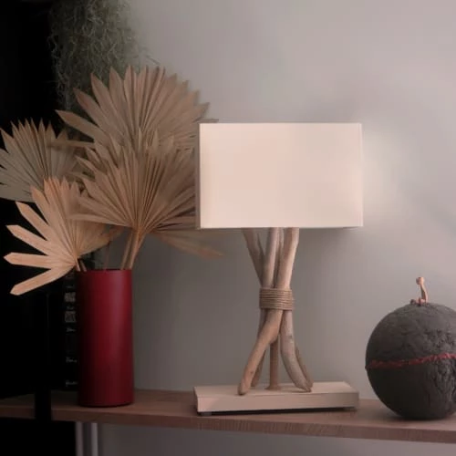 Maisons Du Monde Lampes à Poser Lampe En Céramique Gris Nuage Et Abat-jour En Coton écru