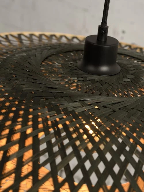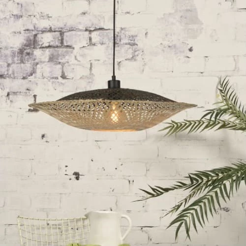 La collection Kalimatan se décline en différents modÚles de suspensions, toutes réalisées en bambou tressé bicolore.