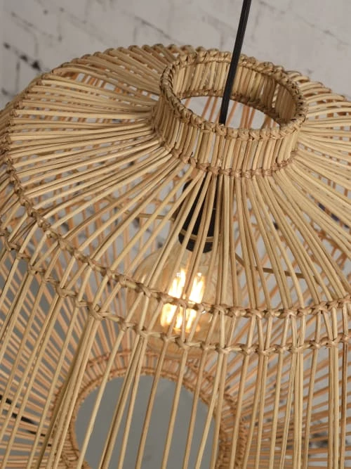 La suspension Madagascar est disponible en deux finitions : rotin naturel ou rotin noir.