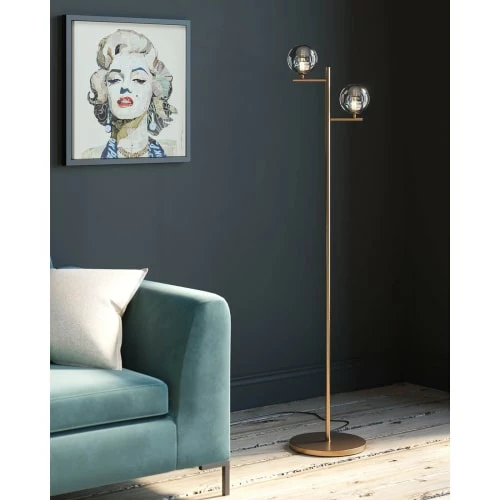 Maisons Du Monde Lampadaires Lampadaire En Marbre Blanc Et Métal Doré, Abat-jour Globe En Verre H153