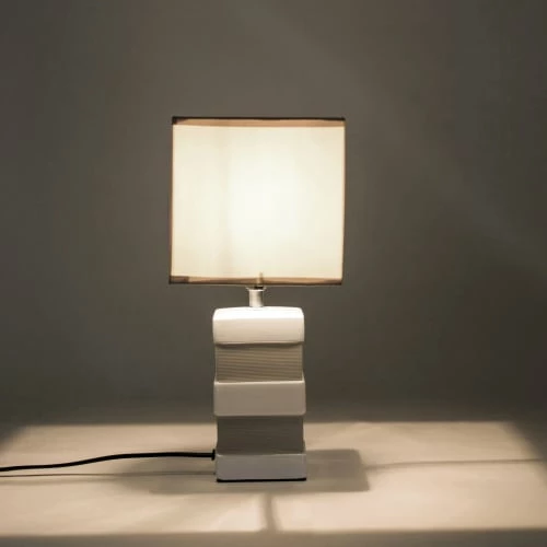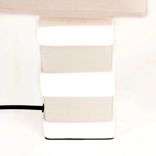 Maisons Du Monde Lampes à Poser Lampe En Céramique Beige Et Fer Doré, Abat-jour En Coton Blanc