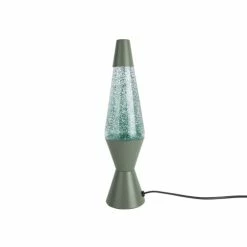 Maisons Du Monde Lampes à Poser Lampe En Verre Vert Et Abat-jour En Lin Recyclé Blanc