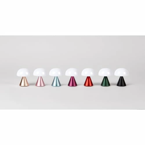 Mina offre deux réglages d’éclairage – chaud et froid – et un variateur d’intensité lumineuse, le tout contrôlé par un bouton situé en dessous de la lampe. Mina est rechargeable via USB-C et peut fournir jusqu’à 6h d’autonomie.