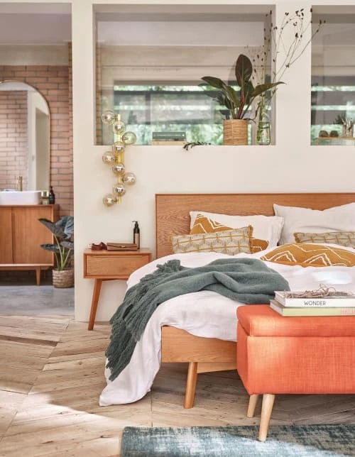 Maisons Du Monde Lampes à Poser Lampe En Céramique Beige Et Fer Doré, Abat-jour En Coton Blanc