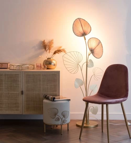 Maisons Du Monde Lampes à Poser Lampe En Céramique Beige Et Fer Doré, Abat-jour En Coton Blanc