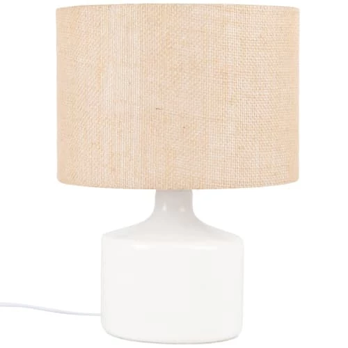 Maisons Du Monde Lampes à Poser Lampe En Céramique Beige Et Fer Doré, Abat-jour En Coton Blanc