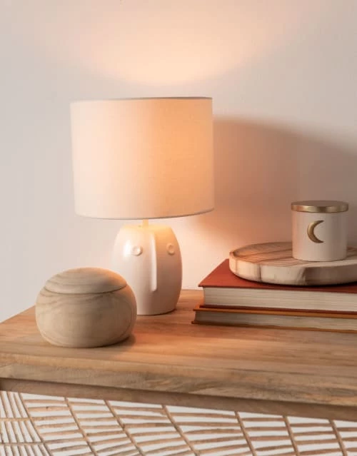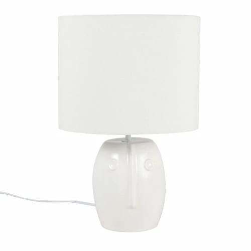 Maisons Du Monde Lampes à Poser Lampe En Céramique Beige Et Fer Doré, Abat-jour En Coton Blanc