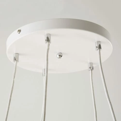 Pour une maison en bord de mer, ou un appartement citadin qui a lui aussi le droit à son ambiance estivale, optez pour cette suspension grappe 5 abat-jour en bambou tressé CAICOS. Vous allez adorer ses abat-jours de formes différentes qui viendront égayer votre intérieur d’une lumière douce et apaisante. Composée de bambou tressé et de métal blanc, cette suspension apportera un brin de nature et de chaleur à votre petit cocon. Que diriez-vous de l’associer à un buffet en bois blanchi ainsi qu’à un tapis en jute pour une ambiance plage aux notes naturelles ? Ce luminaire se satisfera pleinement d’une place au-dessus de votre table de séjour brute, dans votre cuisine immaculée ou dans votre chambre à coucher !