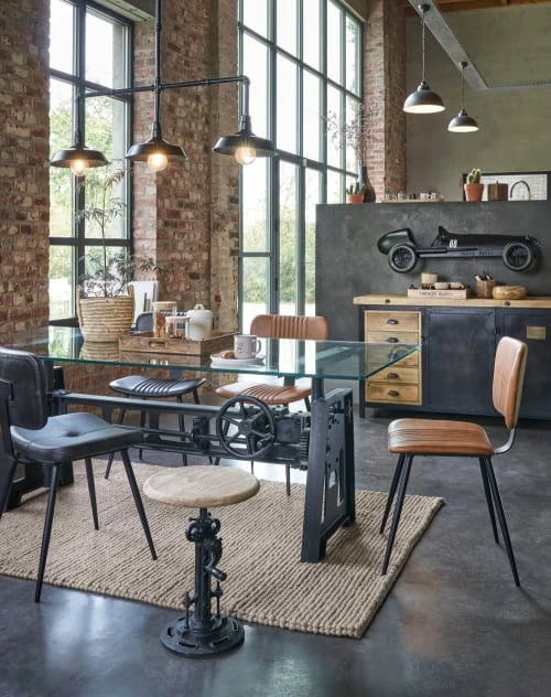 Créez une ambiance authentique avec la suspension indus en métal noir HARVEY. Composée d’une structure en métal noir, elle est également ornée d’une petite plaque cloutée cuivrée qui lui donne un petit côté manufacture du 19ème très tendance. Travaillée avec une finition vieillie, cette suspension se combinera parfaitement à une déco de style industriel ou rétro. Placez-la au-dessus d’une table à manger ou d’un plan de travail en béton ciré pour renforcer son look factory. Elle vous offrira une lumière douce pour une ambiance intimiste. On adore !