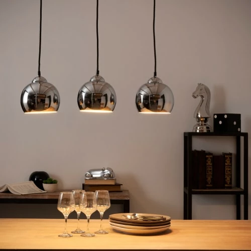 Esprit 70’s revisité, la suspension triple en aluminium chromé TRIO va faire fureur dans votre séjour ! Avec cette suspension dotée de 3 boules métal, offrez à votre intérieur un lustre moderne et terriblement élégant. Une suspension triple idéale pour éclairer un plan de travail ou une table à manger pour une ambiance tendance et raffinée. On adore, et vous ?