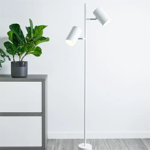 Ce lampadaire moderne est composée d’un socle cylindrique, d’un pied tubulaire et deux diffuseurs cylindriques réglables. L’ensemble du lampadaire Twin est fabriqué en métal. Il dispose d’un câble d’alimentation avec prise de secteur et interrupteur ON/OFF.