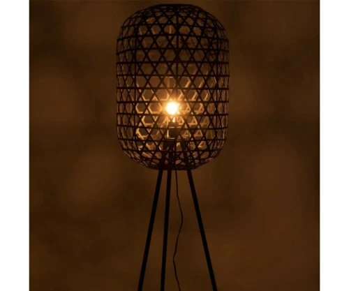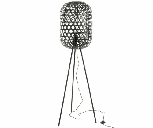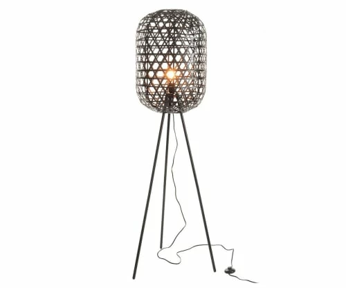 Maisons Du Monde Lampadaires Lampadaire En Bois Noir, Gris Et Beige, Abat-jour En Lin H154