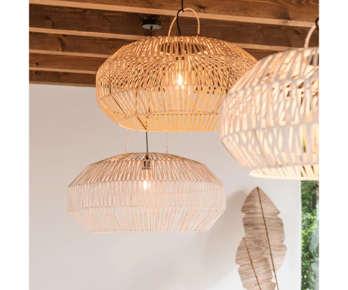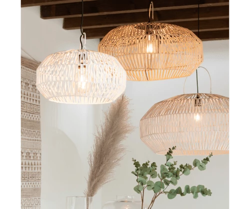 Meubles & Design Suspensions Set De 3 Abat Jour En Rotin Blanc