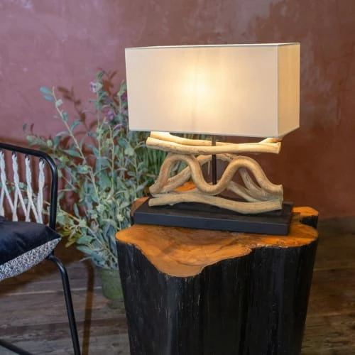 Maisons Du Monde Lampes à Poser Lampe En Verre Vert Et Abat-jour En Lin Recyclé Blanc
