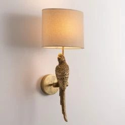 Maisons Du Monde Appliques Murales Et Spots Applique Perroquet Doré Et Abat-jour En Coton écru