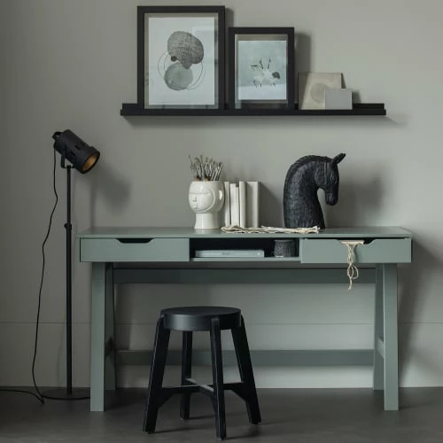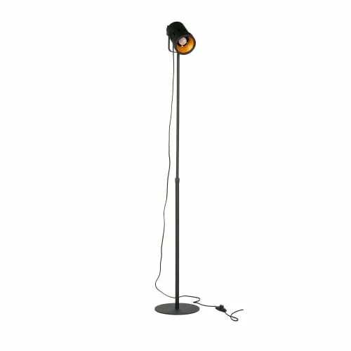 Maisons Du Monde Lampadaires Lampadaire En Bois Noir, Gris Et Beige, Abat-jour En Lin H154