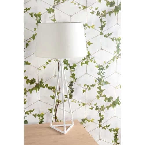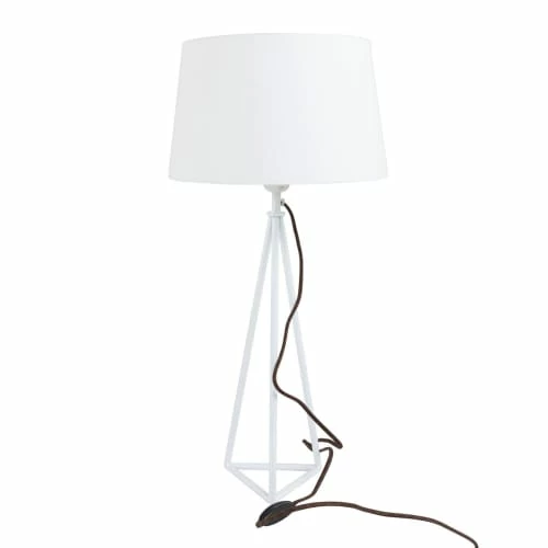 Maisons Du Monde Lampes à Poser Lampe En Céramique Beige Et Fer Doré, Abat-jour En Coton Blanc